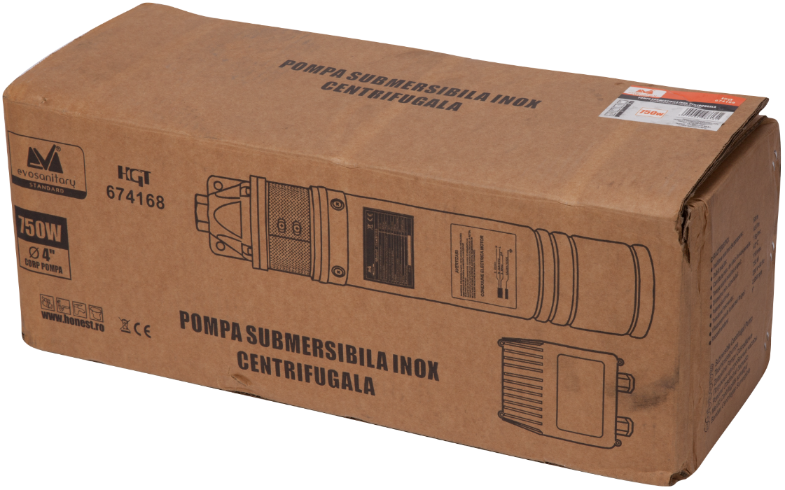 With a power of 750 W, the submersible pump can lift water up to a maximum head of 58 m, providing a maximum flow rate of 46 L/min.