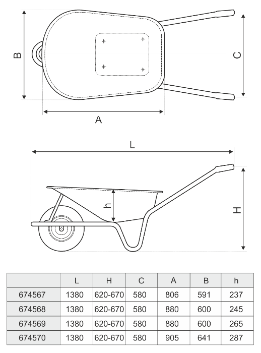 3. Wheel with metal rim and inner tube in the standard configuration. Optionally, solid rubber wheels with plastic or polyurethane rim can be fitted.